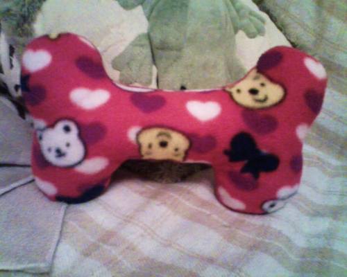 у него отберешь!сверху ложится,лапами обхватывает и рычит! но опробовала я ее после пошива сразу!такая плотненькая вышла!я ее хорошо набила! и легкая!малый в зубах носит за любой угол легко!