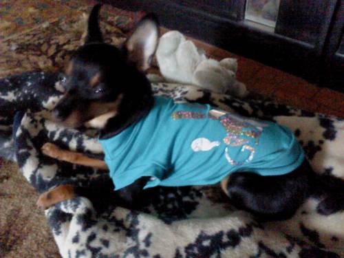Всем приветик!Давайте знакомиться,мы - Ирина и Шери из Луганска.Сегодня получили посылочку от Милены,заказали 3 футболочки.Очень классные,Шери в них просто красавица,только сегодня она не была настроена на фотосессию,фото не очень удачные.